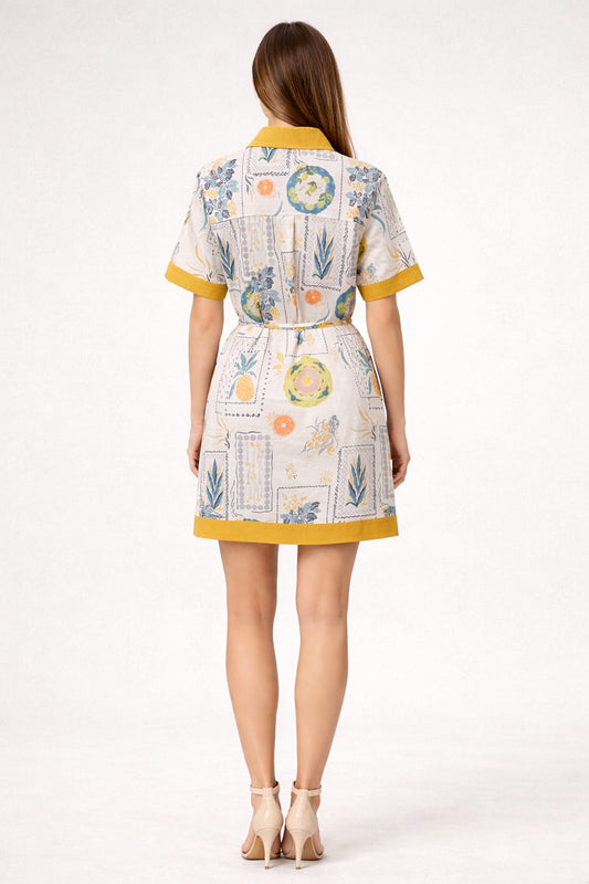 3/4 Sleeve V-Neck Lace Dress- Lemon