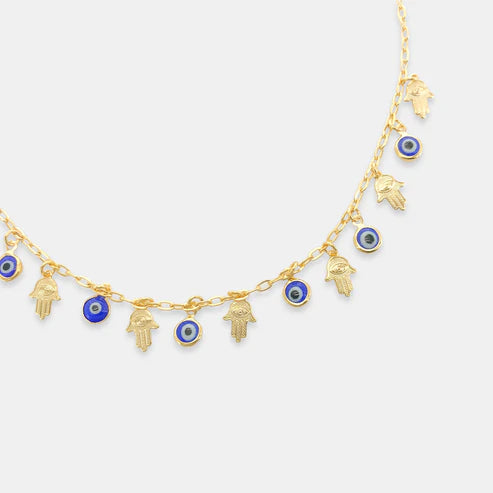 864NK013 - Gold Filled Hamsa and Eye Chain