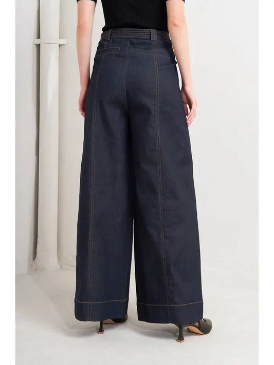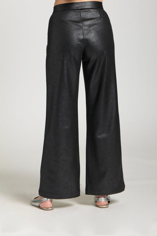 Vegan Leather Wide Leg Pant W/Patch Pockets