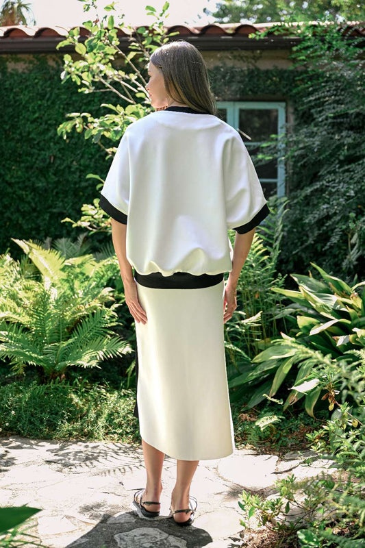 Colorblock Panels Crepe Skirt- White