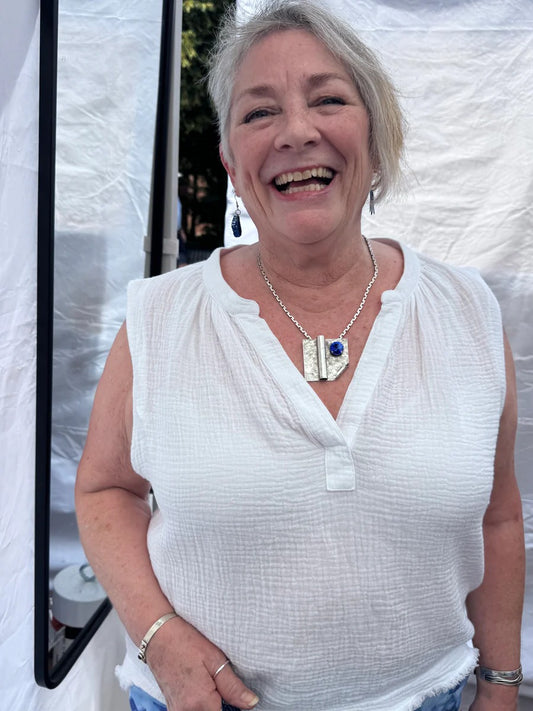 Solara Gold Statement Necklace Iridescent Blue Tanzanite