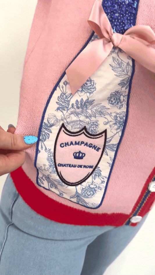Champagne Bottle Patches Pink Cardigan