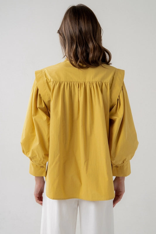 Pleat Shoulder Balloon Sleeve Blouse