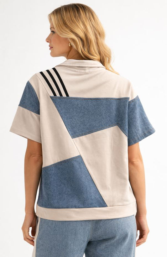 Deborah Top W Denim Contrast.