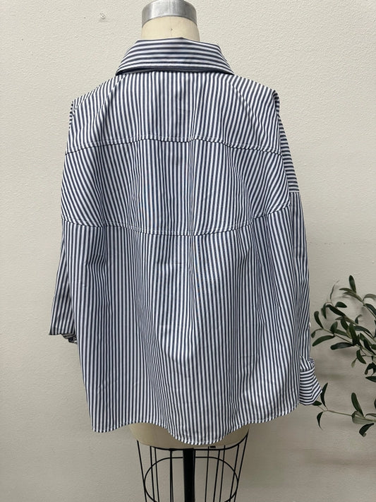 Poplin Stripe Rose Bud Top