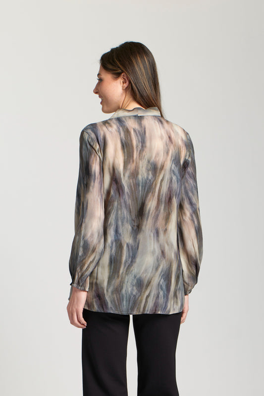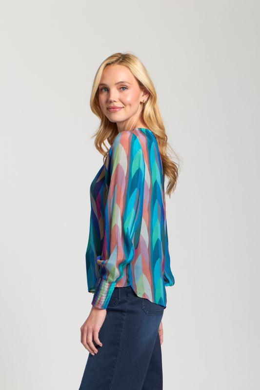 Pullover T18P/C142 Turq.Multi w/ Smocked Cuff Blouse