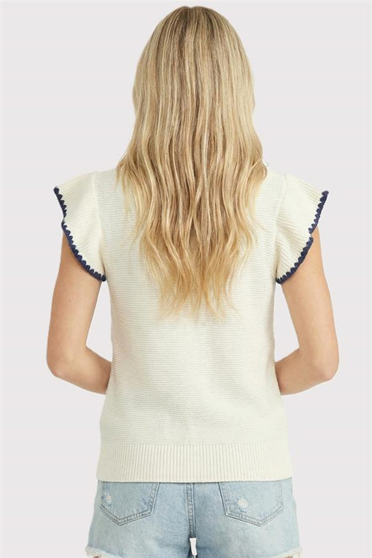 Blanket Stitch Ruffle Short Sleeve Top-Off White