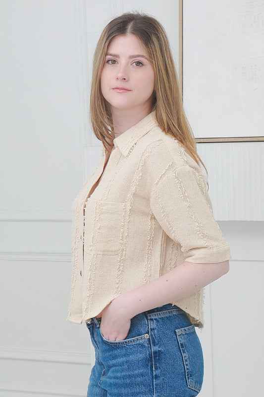 Casual Short Sleeves Crop Shirt