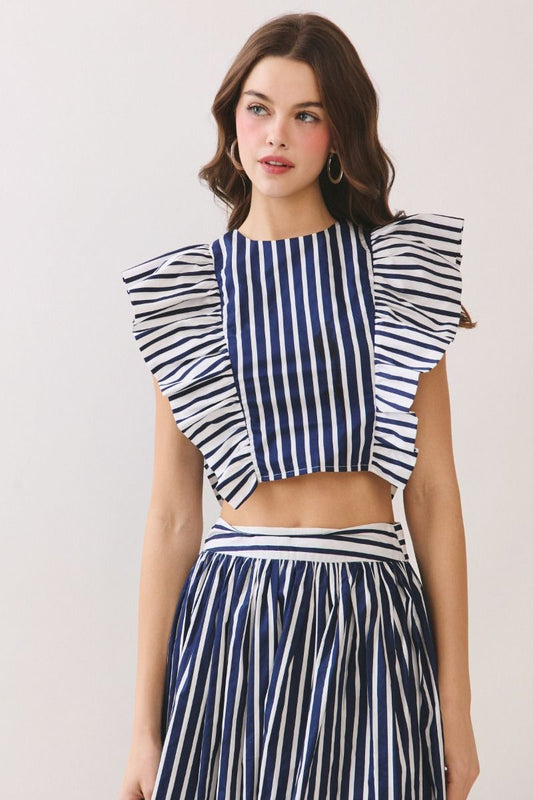 Multi Stripes Crop Top Back Zipper Navy