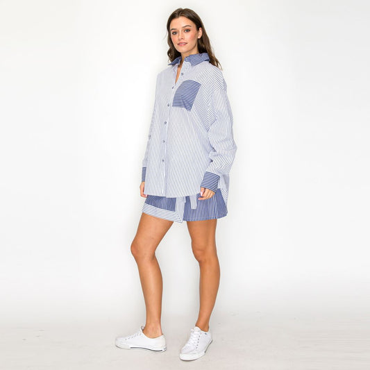 Jeff Stripe with front strings Blouse