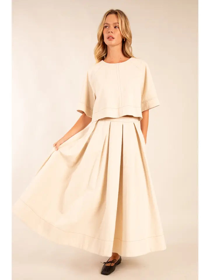 Elevate your look with this structured top featuring a striking back tie detail. The clean lines and short sleeves give it a polished, minimalist aesthetic from the front, while the open back with elegant ties adds a touch of drama and sophistication. This top is perfect for pairing with high-waisted skirts or pants, making it a versatile piece for both casual and semi-formal occasions. Features: -Unique back tie detail for a stylish, eye-catching look -Short sleeves for a polished and clean silhouette -Structured fit for a sleek and tailored appearance -Perfect for pairing with high-waisted bottoms for a chic, modern look