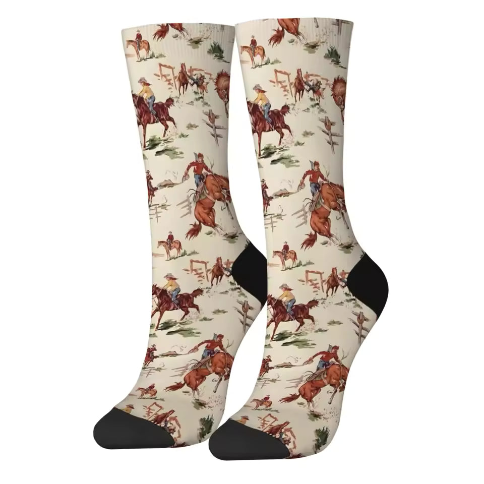 Step into fun with these Cowboy Design Socks! Made from a soft, breathable blend of polyester and spandex, they keep your feet comfy all day long. Perfect for casual outings, sports, or just adding a playful touch to your everyday look. One size fits most, so saddle up and enjoy the ride!