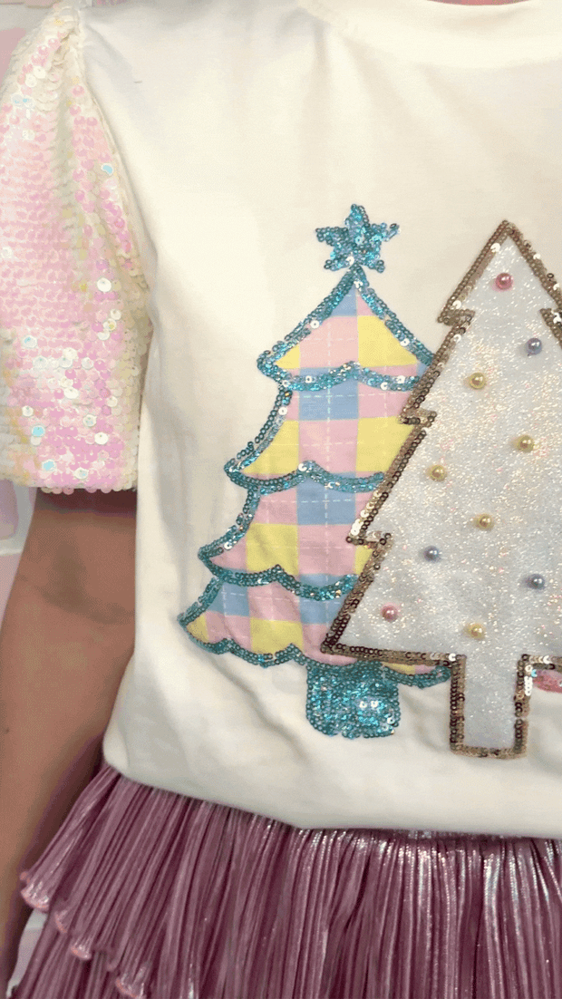 The Forest Princess Top combines relaxed comfort with eye-catching detail. Its oversized silhouette and high-stretch fabric move with you while maintaining a flattering shape, anchored by a classic crew neck. Sequin-adorned tree patches add a distinctive touch, while sleeve lining ensures all-day comfort against the skin. Perfect for those who want effortless style without sacrificing wearability.