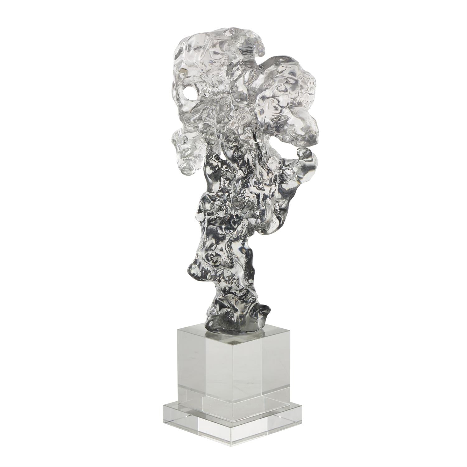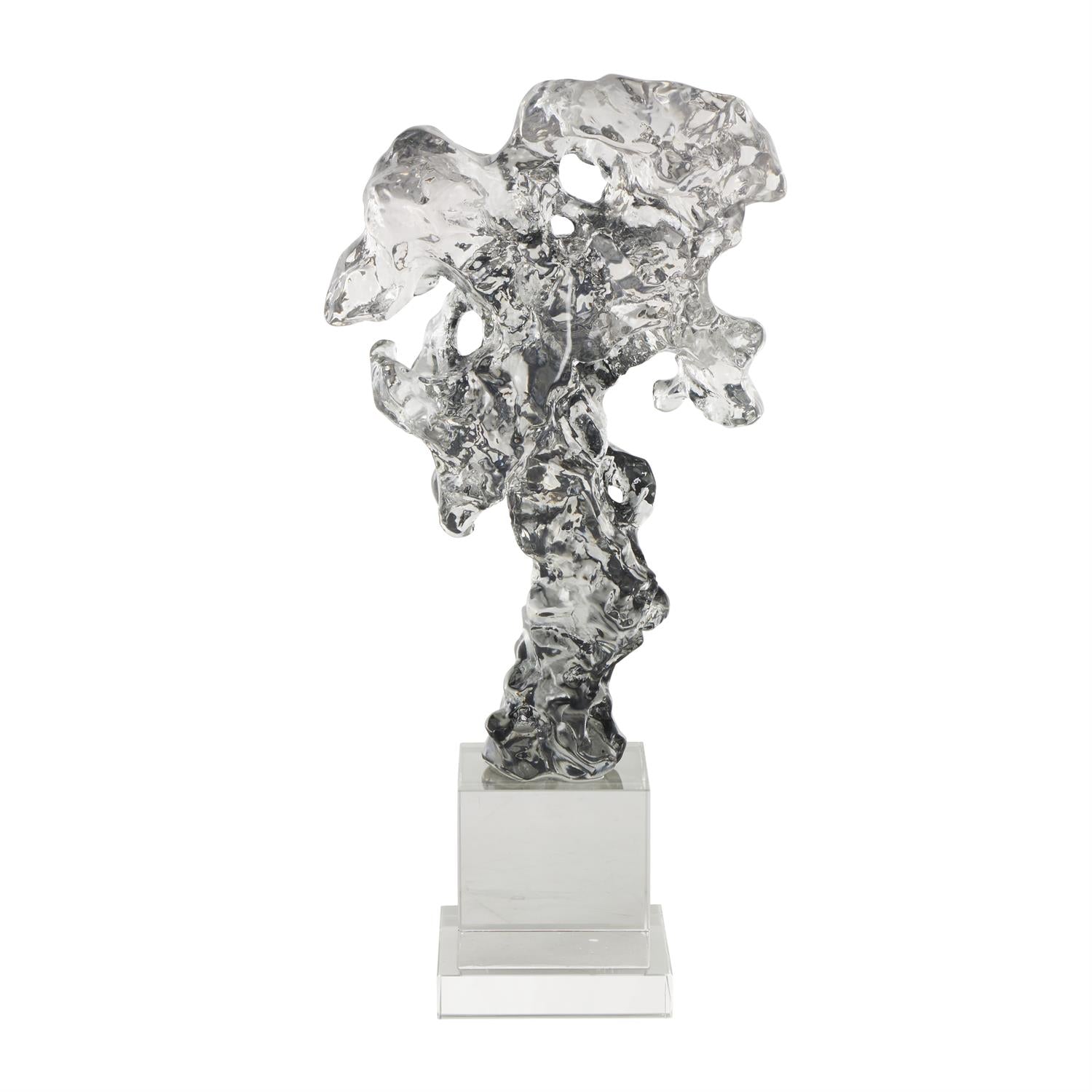 The clear glass sculpture measures 8.13L x 3.88W x 15.38H inches, and weighs 6.50 lbs