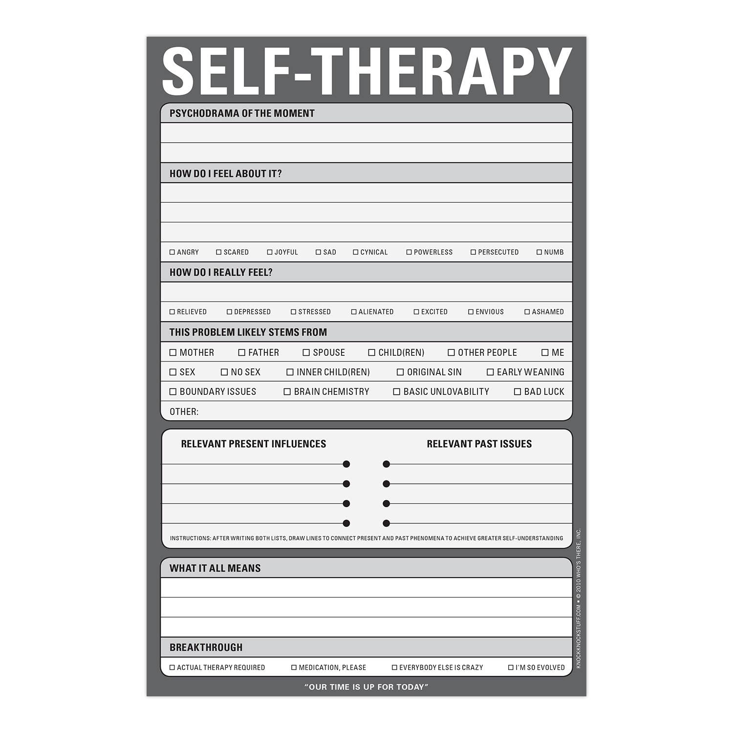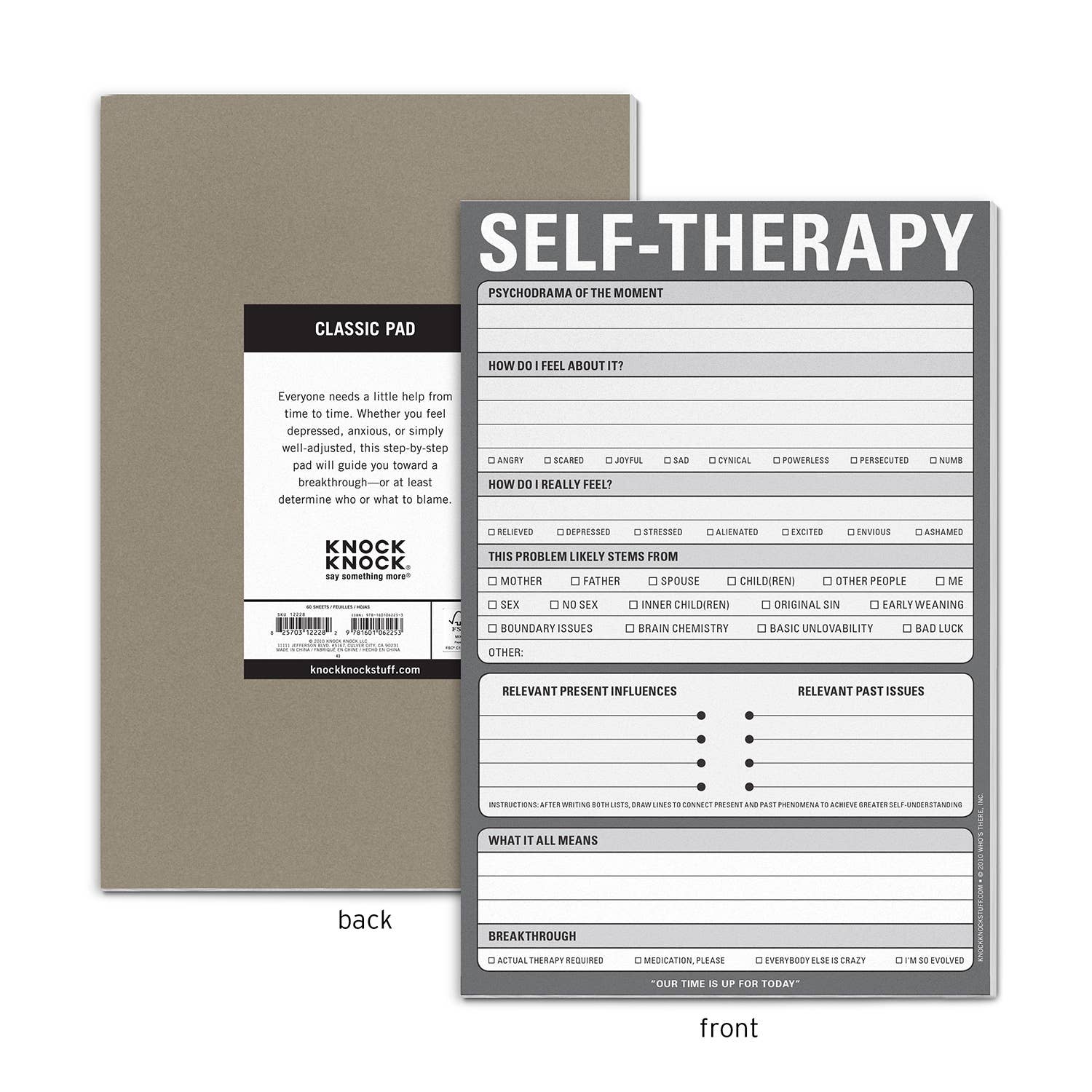 Everyone needs a little help from time to time. With the aid of Self-Therapy, now you can finally help yourself! Whether you feel depressed, anxious, or even perfectly well-adjusted, this step-by-step pad will guide you toward a breakthrough--or at least determine who or what to blame. The perfect gift for friends and family who aren't perfect Checkboxes handily satisfy your inner-child 6 x 9 inches; 60 sheets