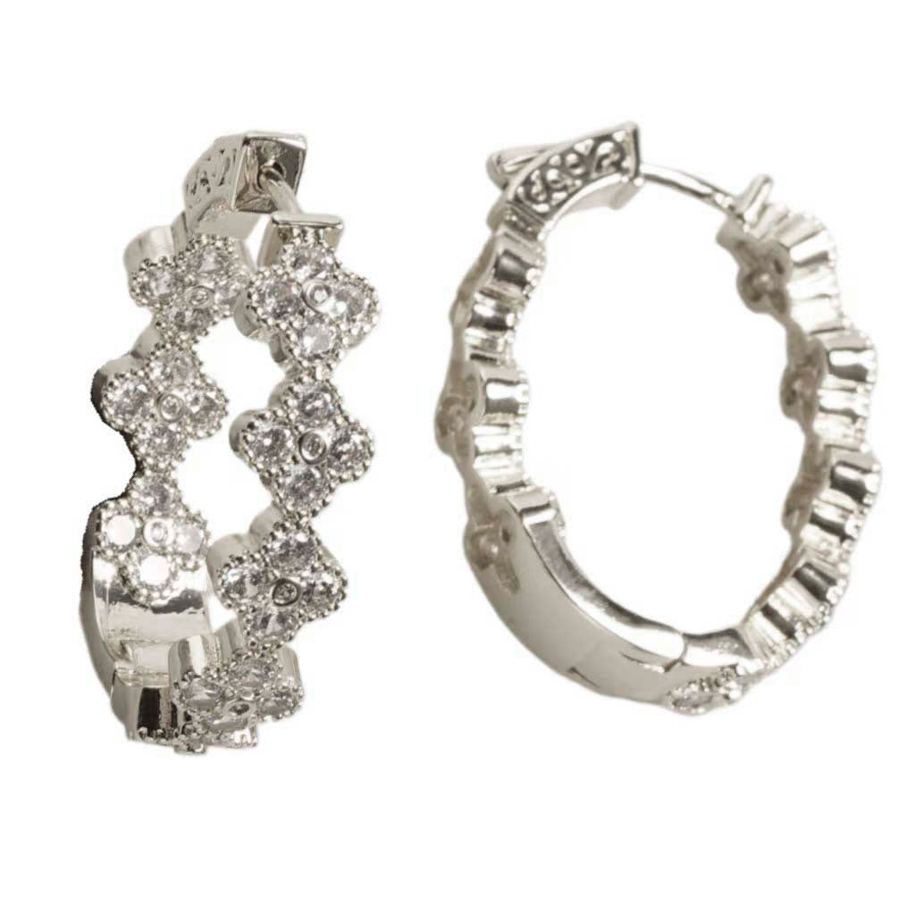 SILVER OVAL PAVE CLOVER HOOP EARRINGS JE3732