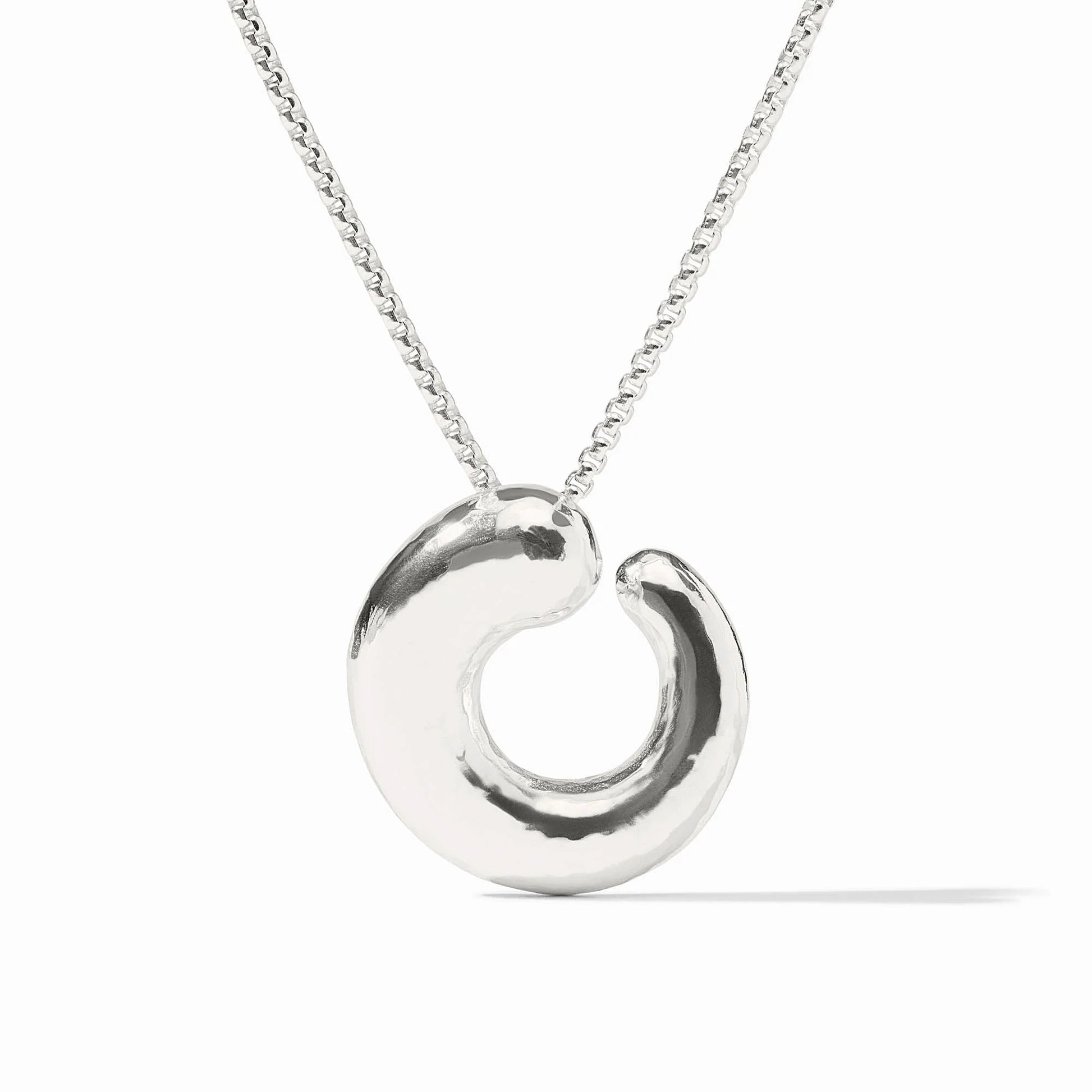 The Solara Spiral Silver Pendant combines timeless elegance with practical versatility. Crafted from pure silver plate with a tarnish-free finish, this piece maintains its lustrous beauty effortlessly. The striking 1.5-inch spiral pendant hangs from an adjustable chain available in three lengths—30, 33, or 36 inches—allowing you to customize the fit to your preference. Secured with a reliable lobster clasp, this necklace transitions seamlessly from everyday wear to special occasions, offering refined sophistication for any wardrobe.