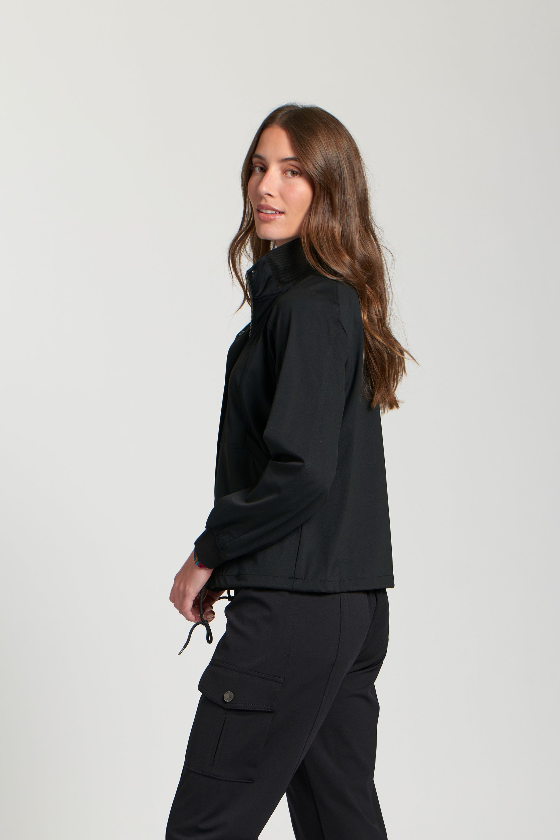 Step out in functional style with this sleek Black Utility Jacket. Designed for practical everyday wear, this jacket features a stand collar, a dual front closure with both zipper and snaps for extra protection, and an adjustable drawstring hem. Its versatile black color and streamlined fit make it a perfect lightweight layer for transitioning seasons, easily complementing any casual or adventure-ready outfit.